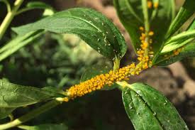 Yellow aphids can appear in large colonies and are often a terrifying sight as they devour milkweed plants.